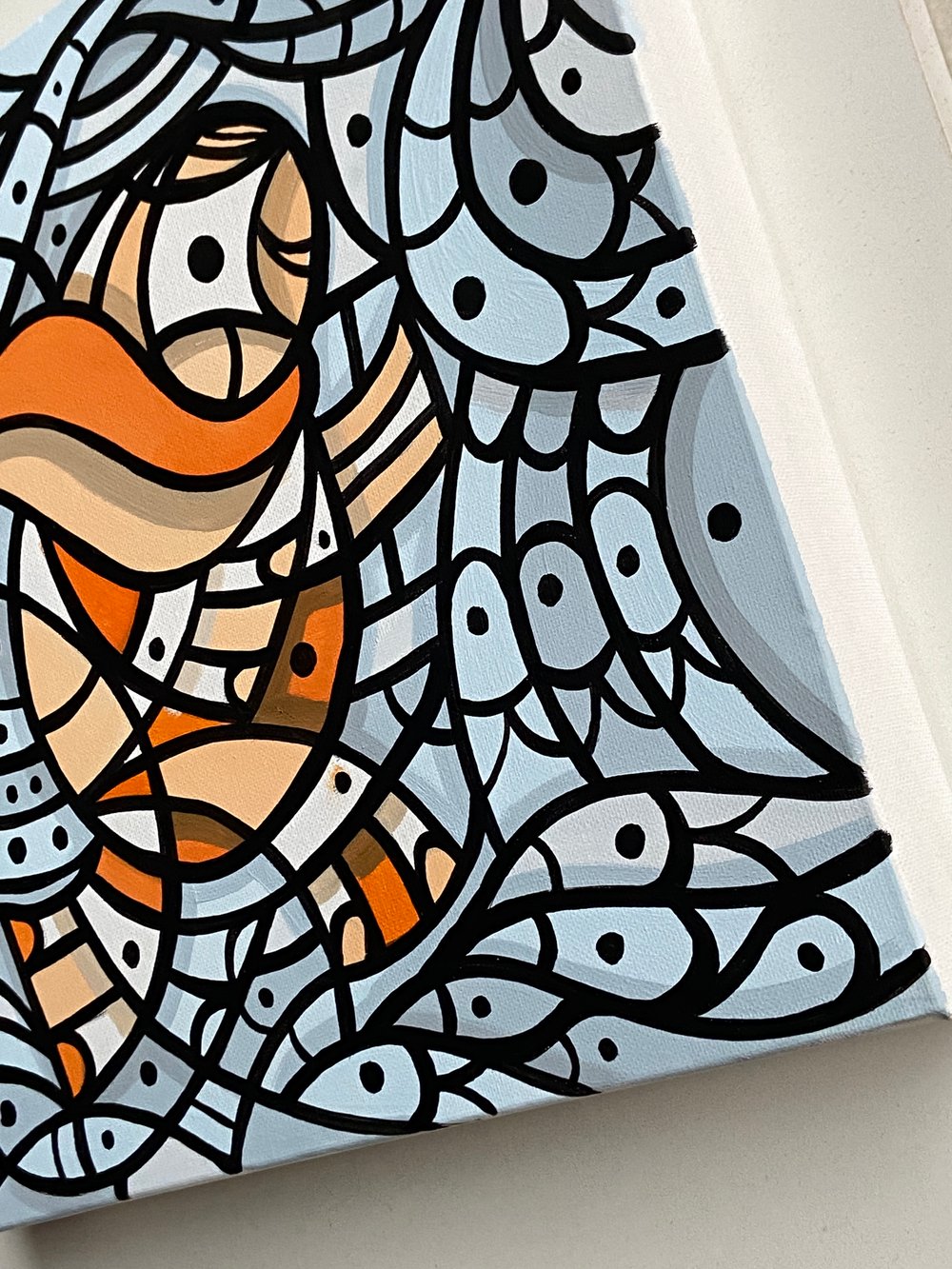 12" x 12" acrylic painting on stretched canvas with gallery edge.