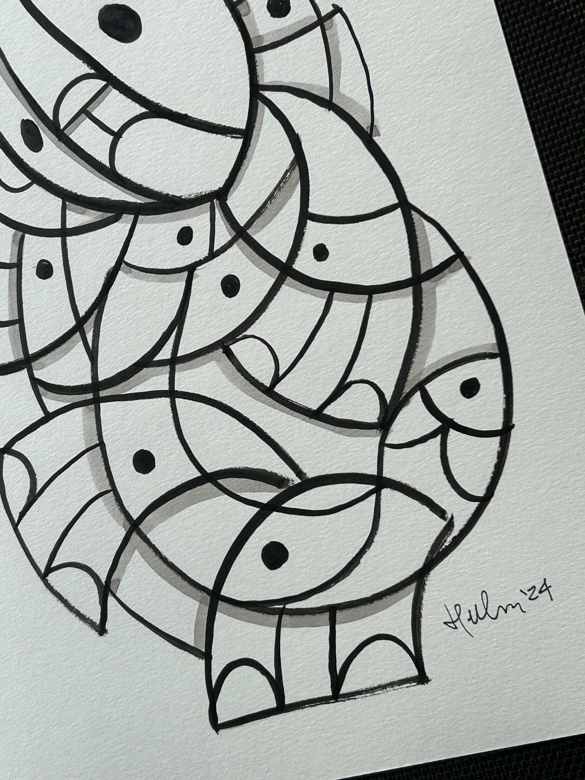 9” x 12” hand drawn pencil sketch that is inked with Winsor& Newton permanent and archival India ink.